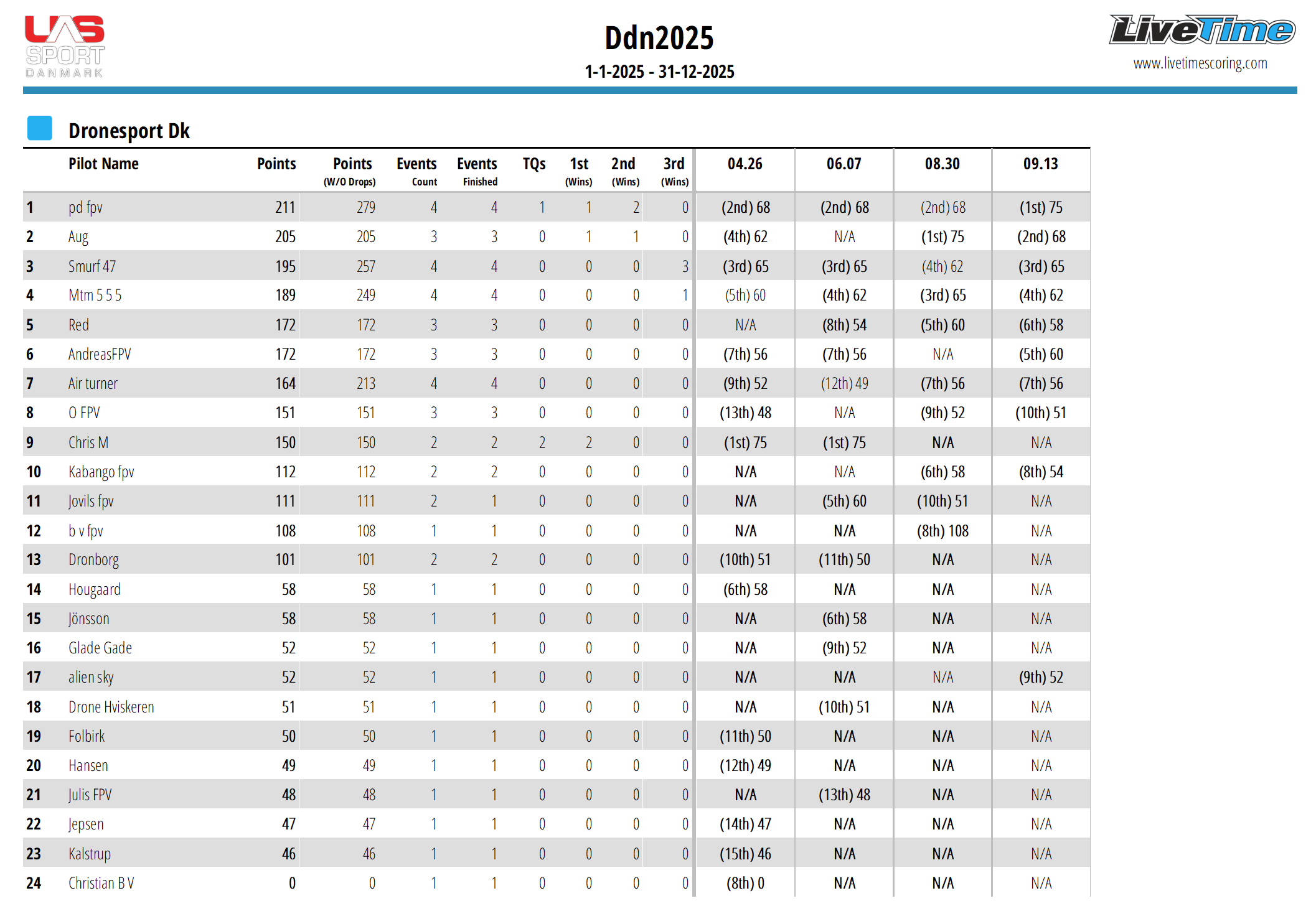 Derudover droppes hver pilots dårligste resultat, dvs. hvis man f.eks. efter 3. løb har fået 65, 68 og 56 point, så smides de 56 point væk – eller hvis man f.eks. kun har deltage i 2 ud af 3 løb, vil de 2 løb man har deltaget i tælle med.